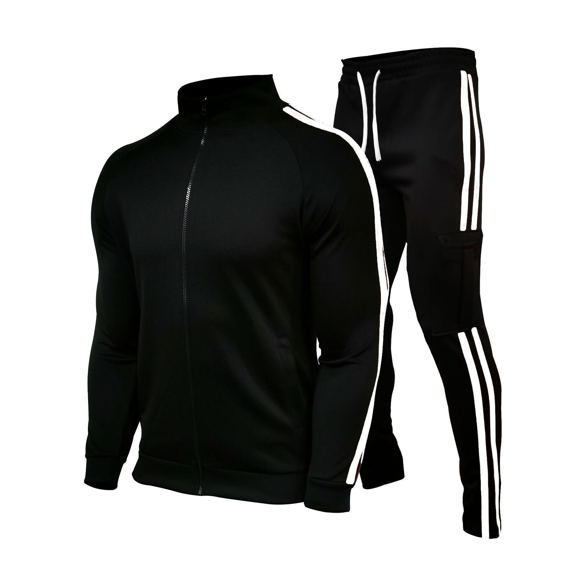 Stay cool and look sharp in this new arrival designed for the modern Pakistani man. Perfect for daily wear, gym sessions, or casual outings, this stylish two-piece set offers comfort without compromising on fashion. The slim fit ensures you move freely while the durable fabric withstands daily use, making it ideal for the local climate and active lifestyle. This premium quality set is crafted with a soft, breathable material that keeps you comfortable all day. The sleek black design with bold red stripes adds a sporty edge to any outfit, while the full-zip jacket and elastic waist pants ensure ease of movement. Whether you’re running errands or relaxing at home, this set delivers both style and durability. The cargo pockets on the pants offer practical storage, and the drawstring waist allows for a customizable fit. - Slim-fit design for a modern silhouette - Durable, breathable fabric for all-day comfort - Stylish red stripes for a sporty look - Full-zip jacket with a cardigan collar - Elastic waist pants with drawstring closure - Cargo pockets for convenient storage